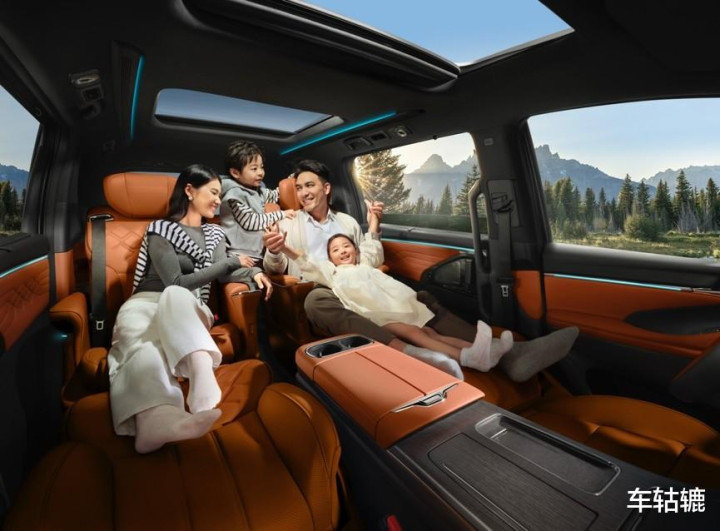 其三,唯一配备后排智能尊享座舱。二排独立航空座椅集成 8 点按摩、通风 / 加热 / 电动腿托等功能,更首创 “亲子模式”—— 开启后座椅自动调节至舒适角度,中控屏内容同步至后排娱乐屏,搭配 256 色氛围灯与 12 扬声器索尼音响,打造移动的家庭影院。同级车型多聚焦商务属性,如此贴合家庭需求的设计实属罕见。